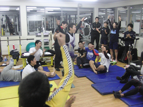 人数が多かったので腹筋するときは部屋いっぱいに溢れんばかり