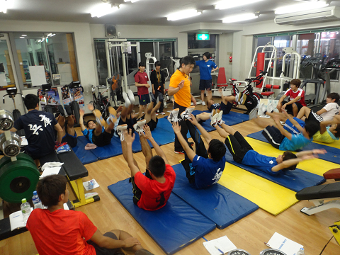 一日目の締めは恒例の腹筋パーティーです。