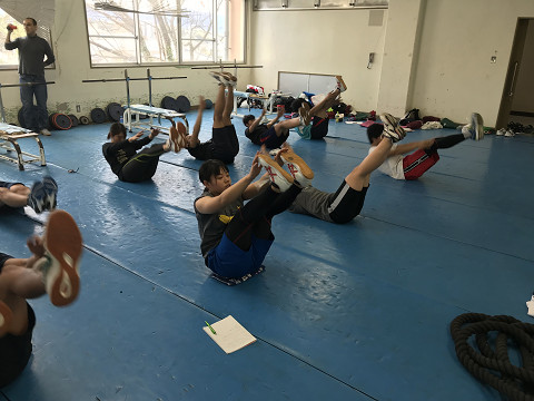体幹も大事なので合宿恒例の腹筋パーティー!