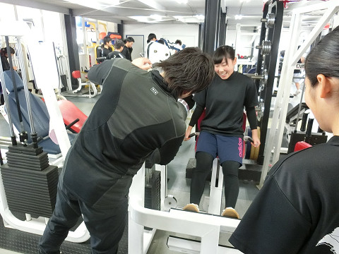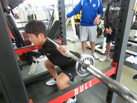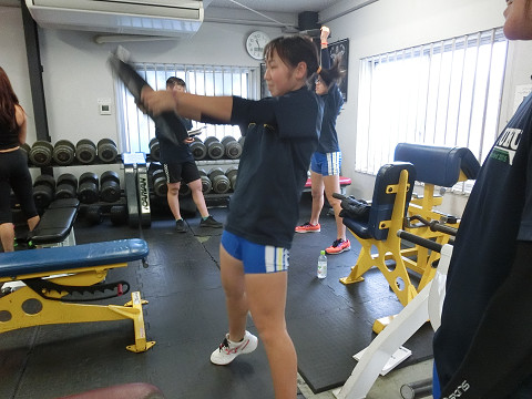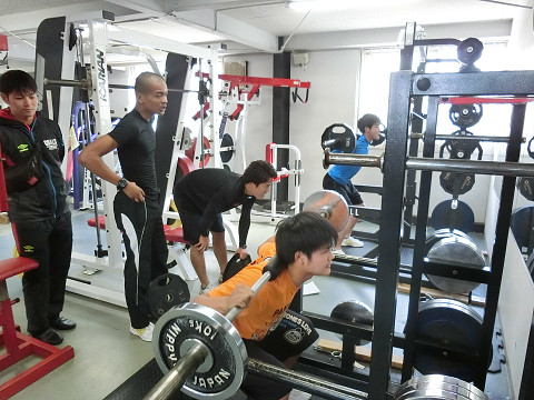 着いて早々まずはフリーウェイトのフォームチェックから!