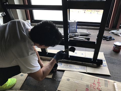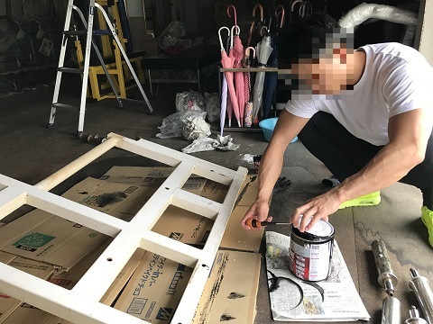 僕たちがラック台を塗っている場所は、