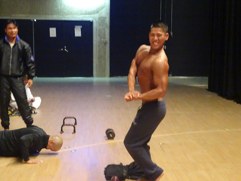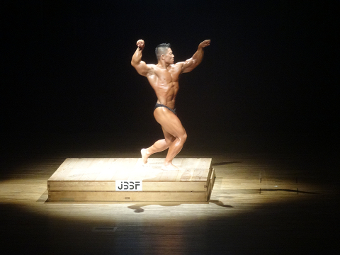 規定ポーズを行い筋肉の大きさや形、切れなどを審査します