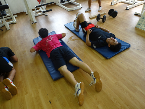二日目も上半身、下半身のトレーニングを二部に分けて行います。
