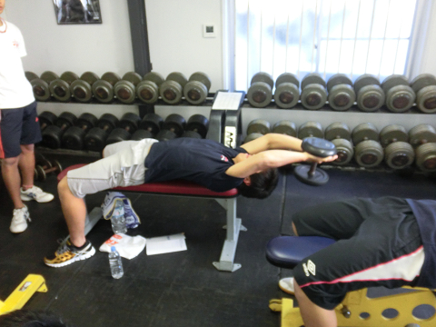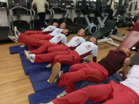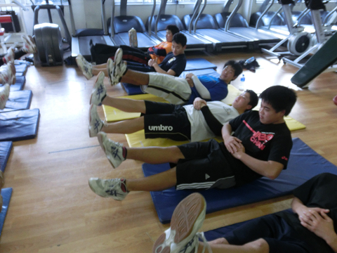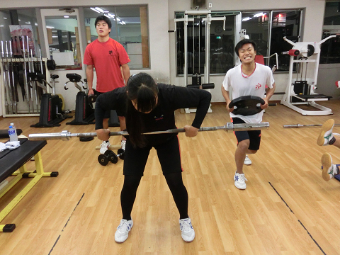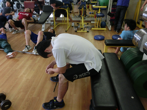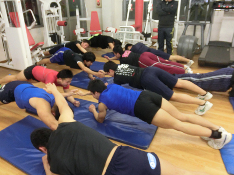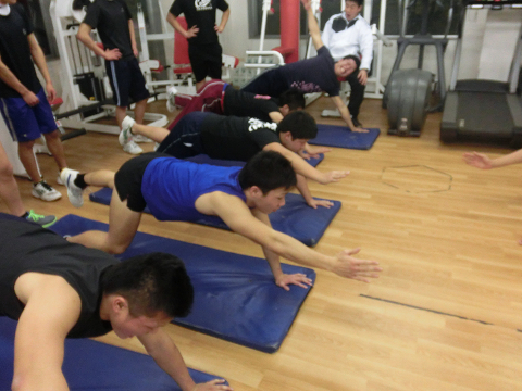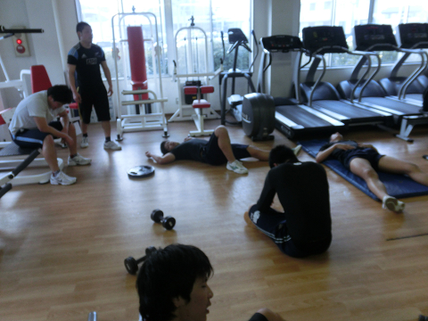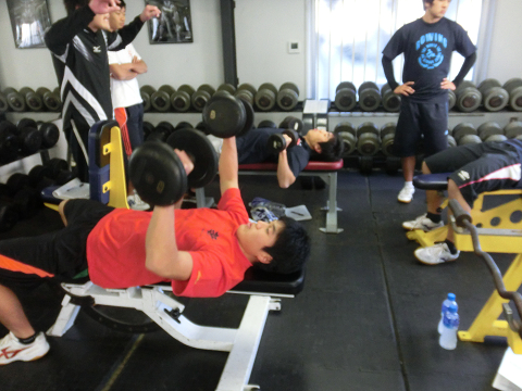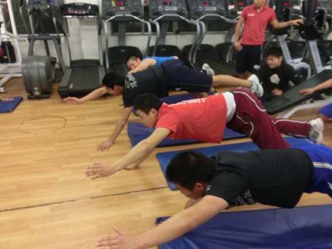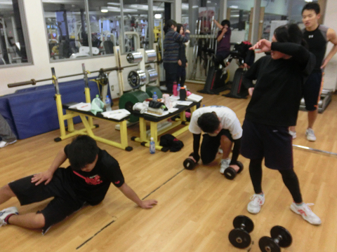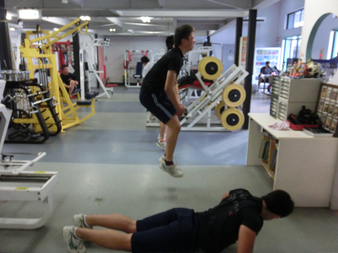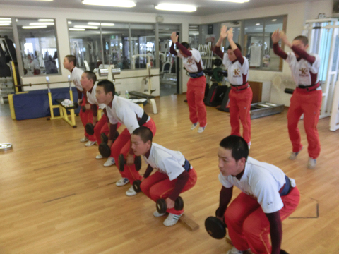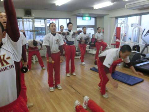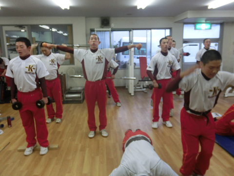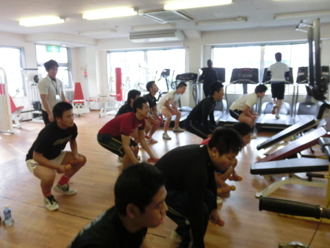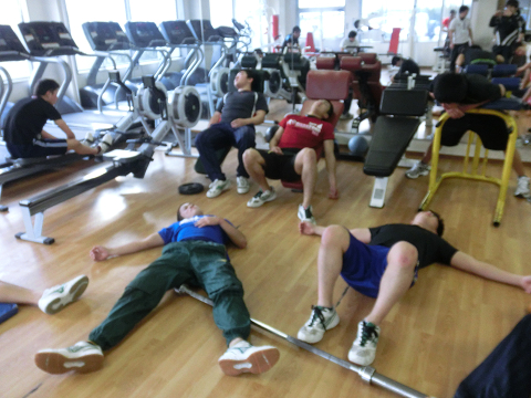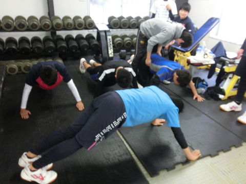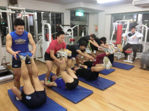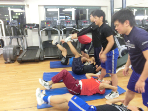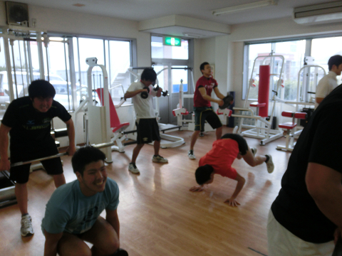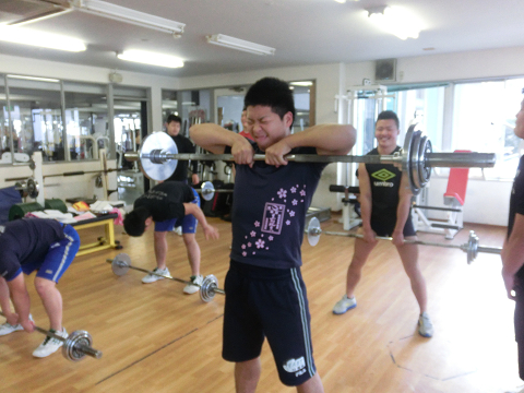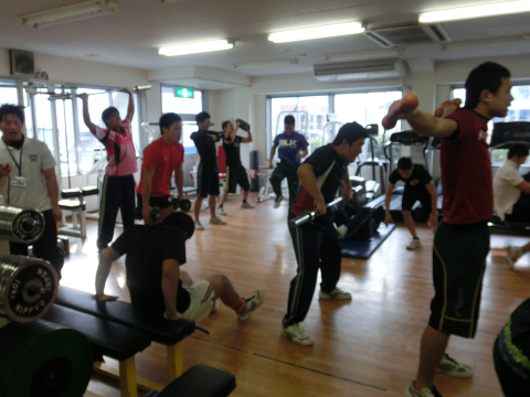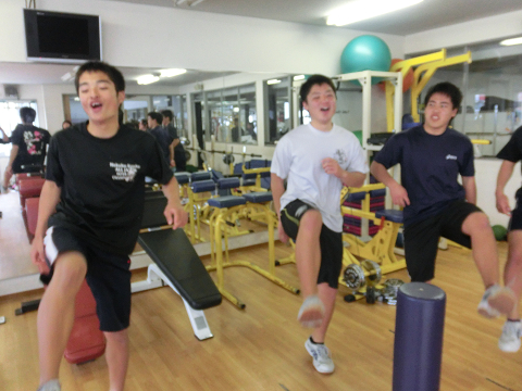 Tシャツを脱いでいる選手は………次回のランクアップ合宿は…通常以上に追い込む(サービス)します