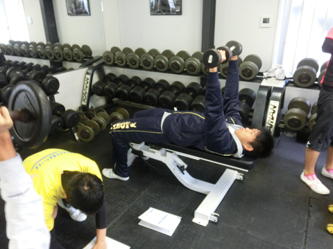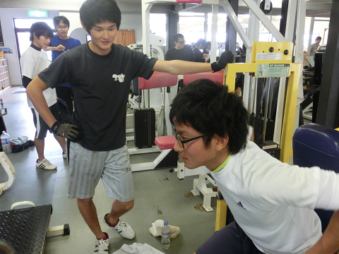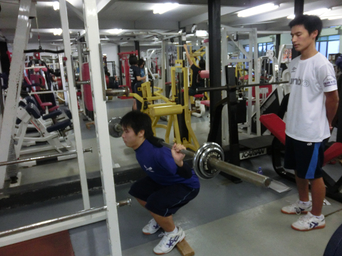 きっちりとフォームチェックをしながら、大学生ということで、1日目からがっつりトレーニング