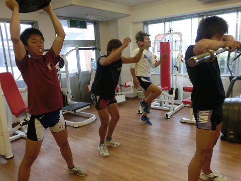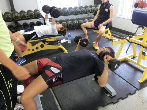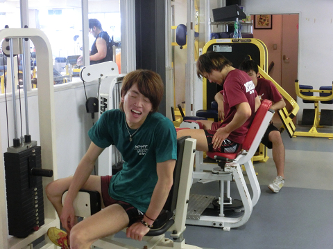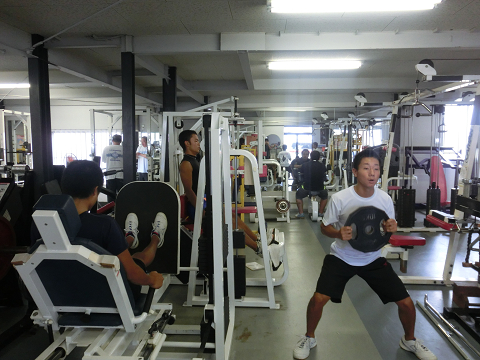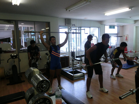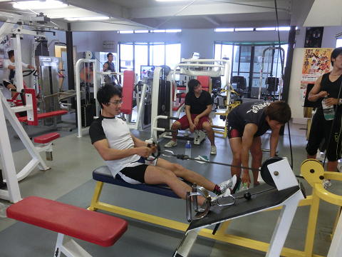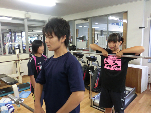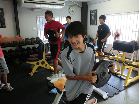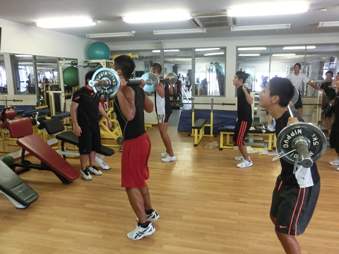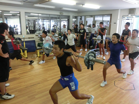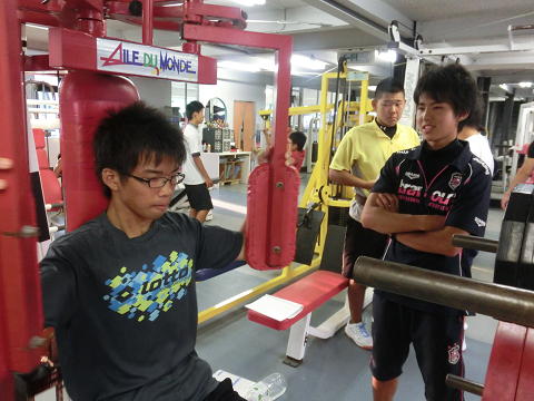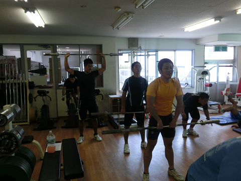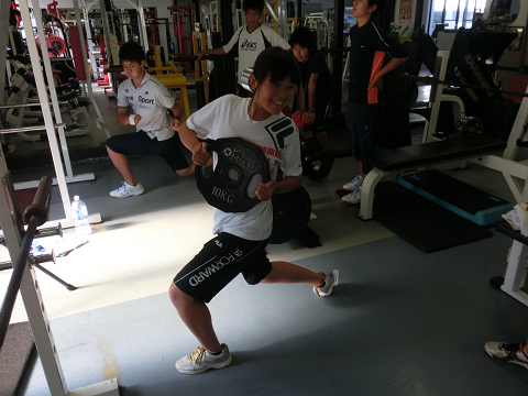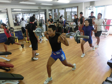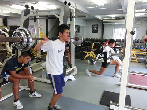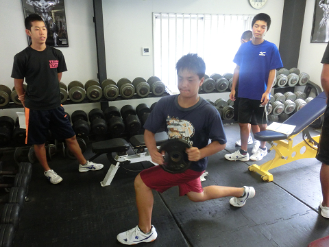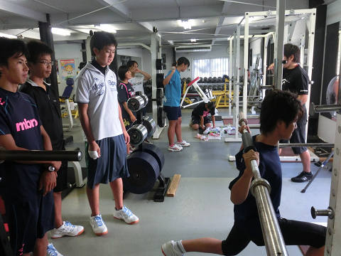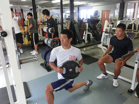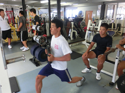 ウエイトトレーニングは慣れたもの、上級生はどんどんメニューをこなしていきます