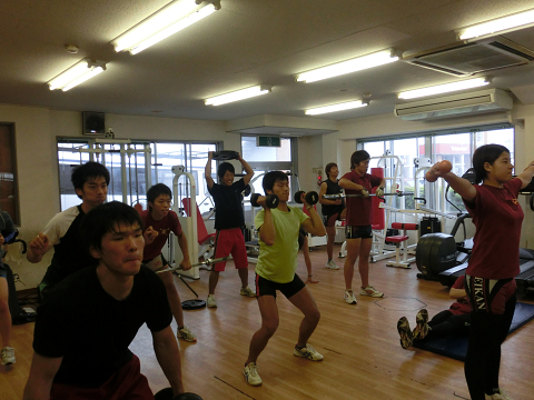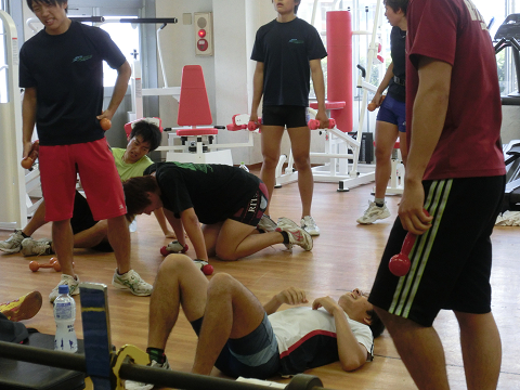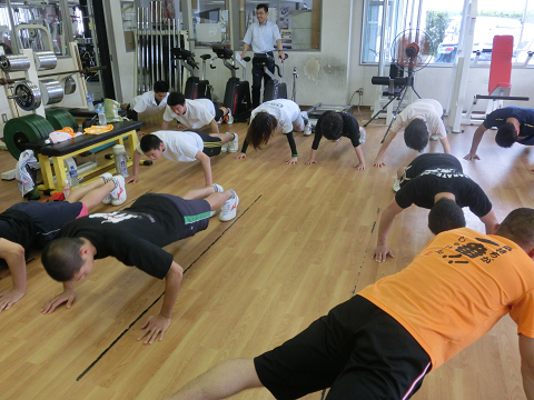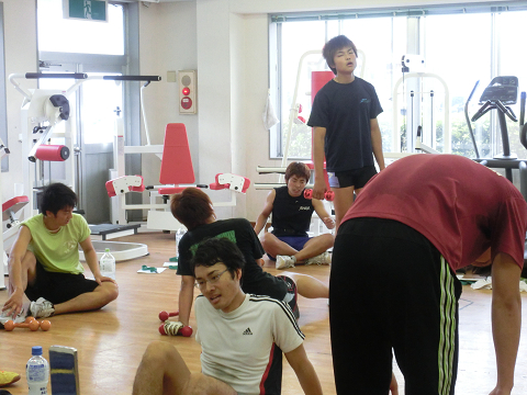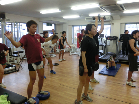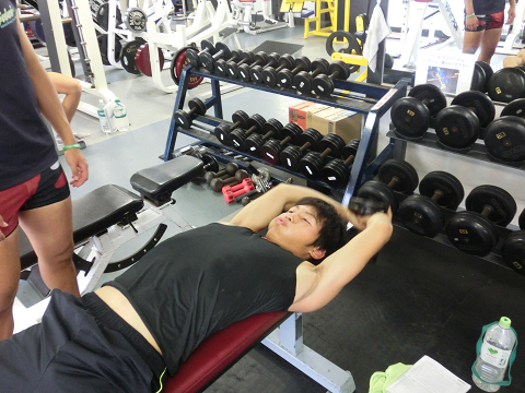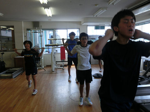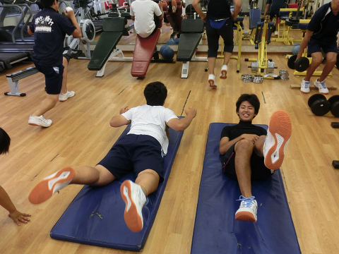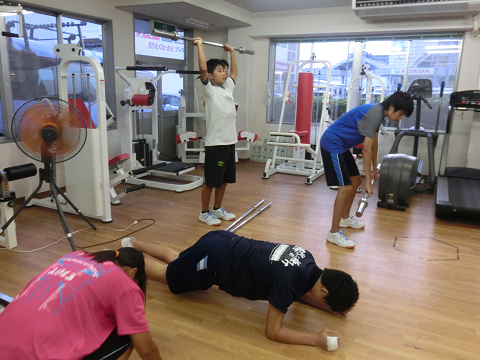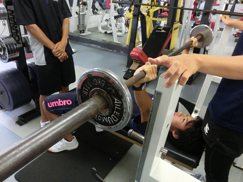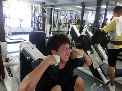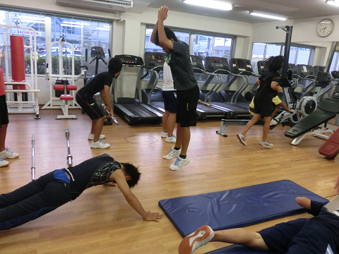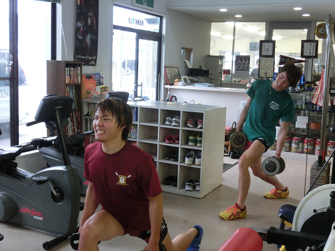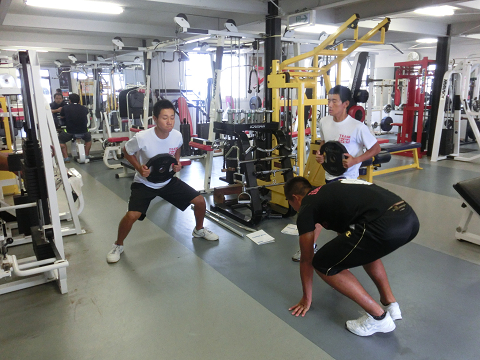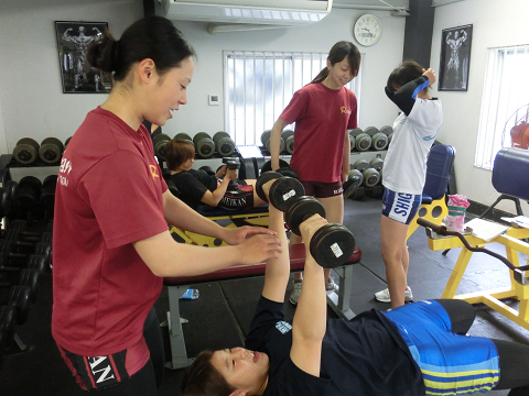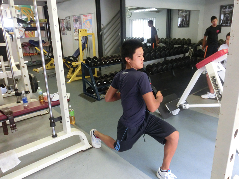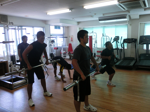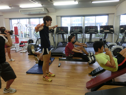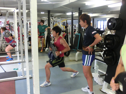 ウエイトトレーニングは慣れたもの、上級生はどんどんメニューをこなしていきます