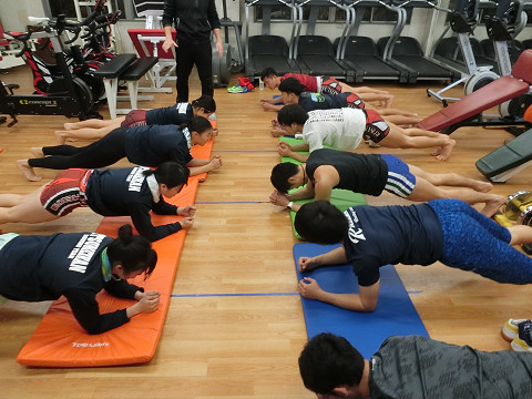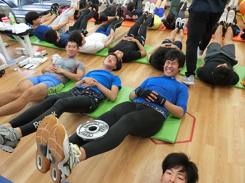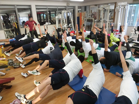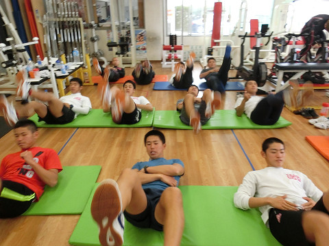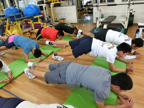 合宿二日目には体幹トレーニング!